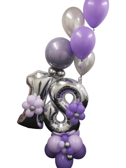 Double digit number display on a balloon base of 8 balloons, standing approx 10ft high, in your preferred colours and personalised