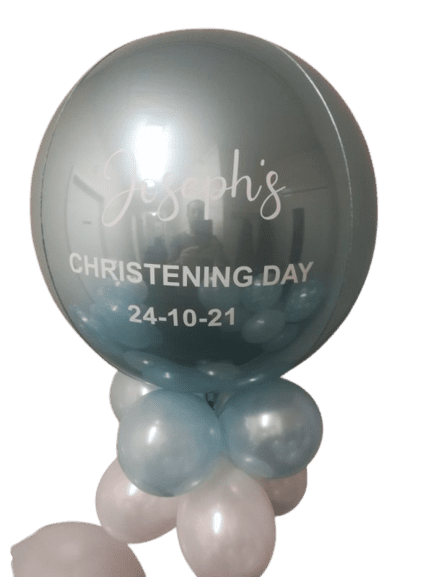 16″ round foil balloon supplied inflated on it’s own or with balloon collar and base, can be personalised